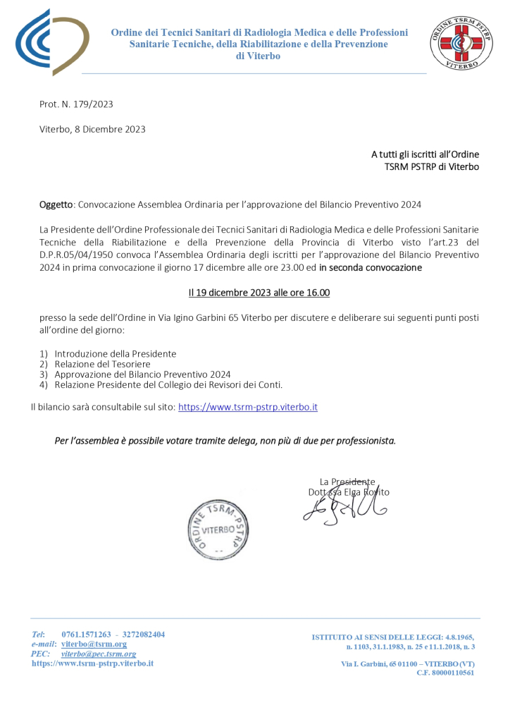 Convocazione Assemblea Iscritti 19 dicembre 2023
