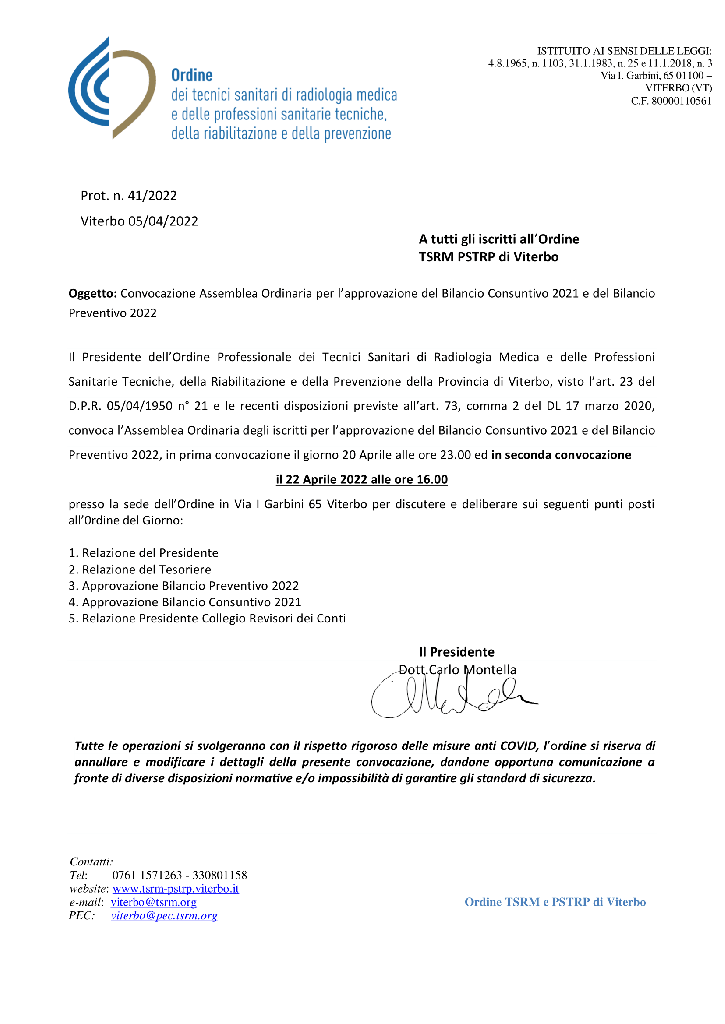 Convocazione Assemblea Provinciale Iscritti - APRILE 2022